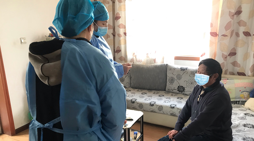 “贾叔叔,您的女儿得知最近您的腿不舒服,不想您去医院来回奔波,这次让我们过来主要给您抽血,检查一下血常规和肝肾功能。”汉中市人民医院的李锐护士按照预约时间来到了贾叔叔小区,在贾叔叔家外的楼道里护士换好工作服,准备进家里为其提供静脉采血服务。