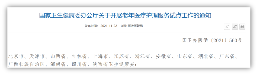为解决此类问题,国家卫生健康委办公厅发布《关于开展老年医疗护理服务试点工作的通知》,要求试点地区和医疗机构要积极探索创新多元化老年医疗护理服务模式。