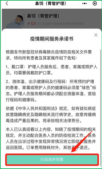 第二步:选择护理服务后点击“立即预约”,阅读承诺书后点击“已阅读并同意”。