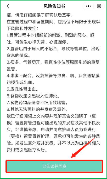第三步:阅读风险告知书后点击“已阅读并同意”,填写就诊人信息,并点击“确认预约”,在家等待护士上门就好啦!