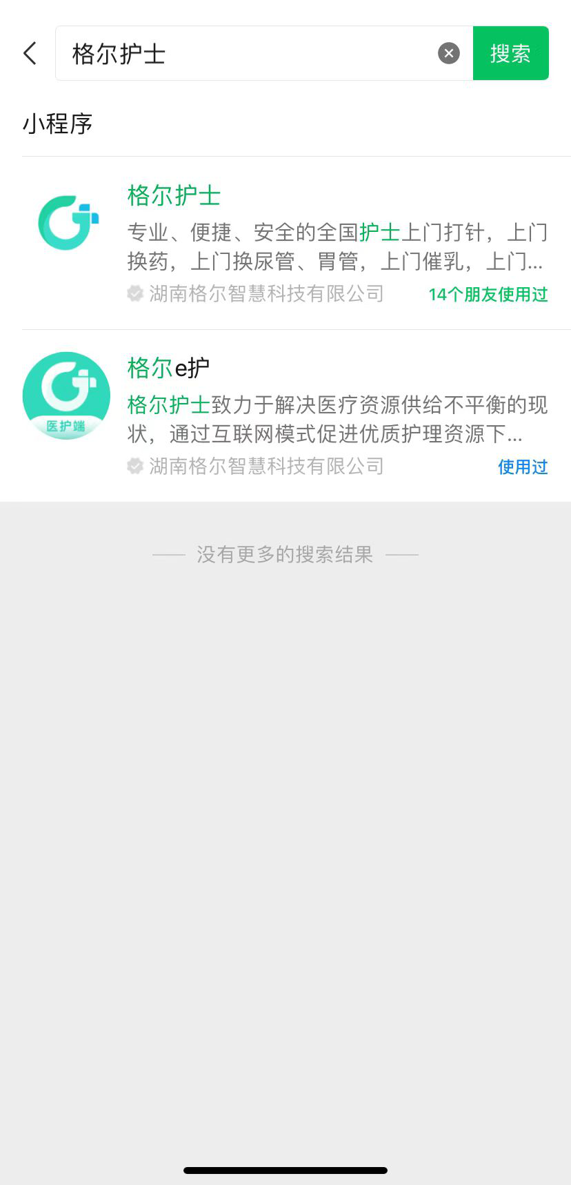 ①第一步 搜索微信小程序“格尔护士”,选择需要的护理项目。