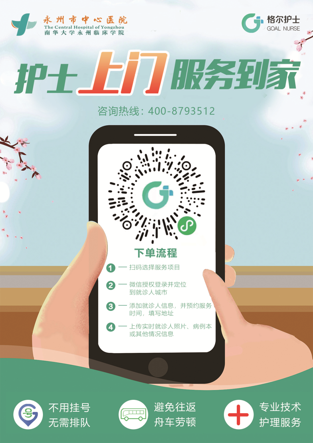 永州市中心医院作为永州市首批“互联网+护理服务”试点医院,于2021年9月9日正式与湖南格尔智慧科技有限公司合作开展上门服务,依托“格尔护士平台”通过线上申请、线下服务的模式,派出本院护士为出院患者或罹患疾病且行动不便的特殊人群提供的居家护理服务。