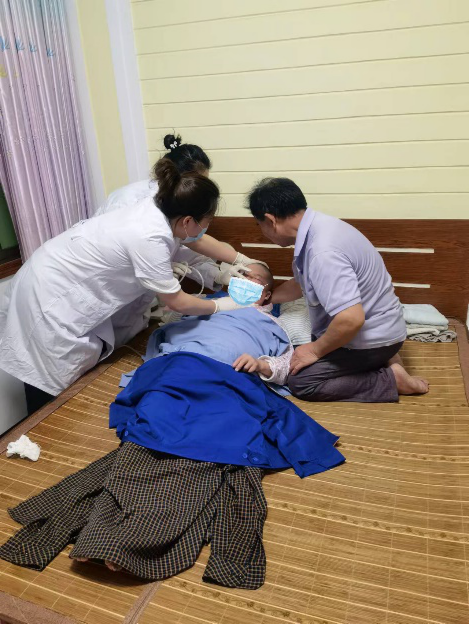 晚上21点两位老师赶到张阿姨家中为她重置胃管,解决了管路堵塞的问题。看到张阿姨舒缓的表情,其老公终于松了一口气。