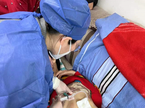 张敏护士长在家中为患者更换胃造瘘管