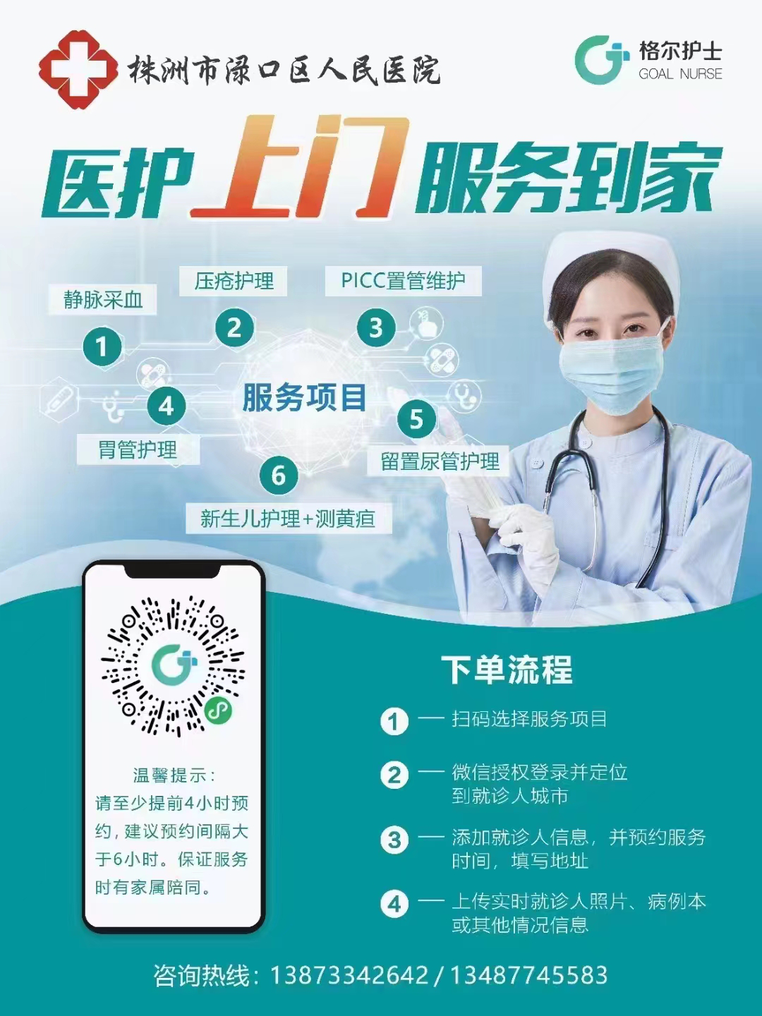 于是其家属在得知渌口区人民医院开通了上门服务后,便马上预约了“胃管更换”服务。