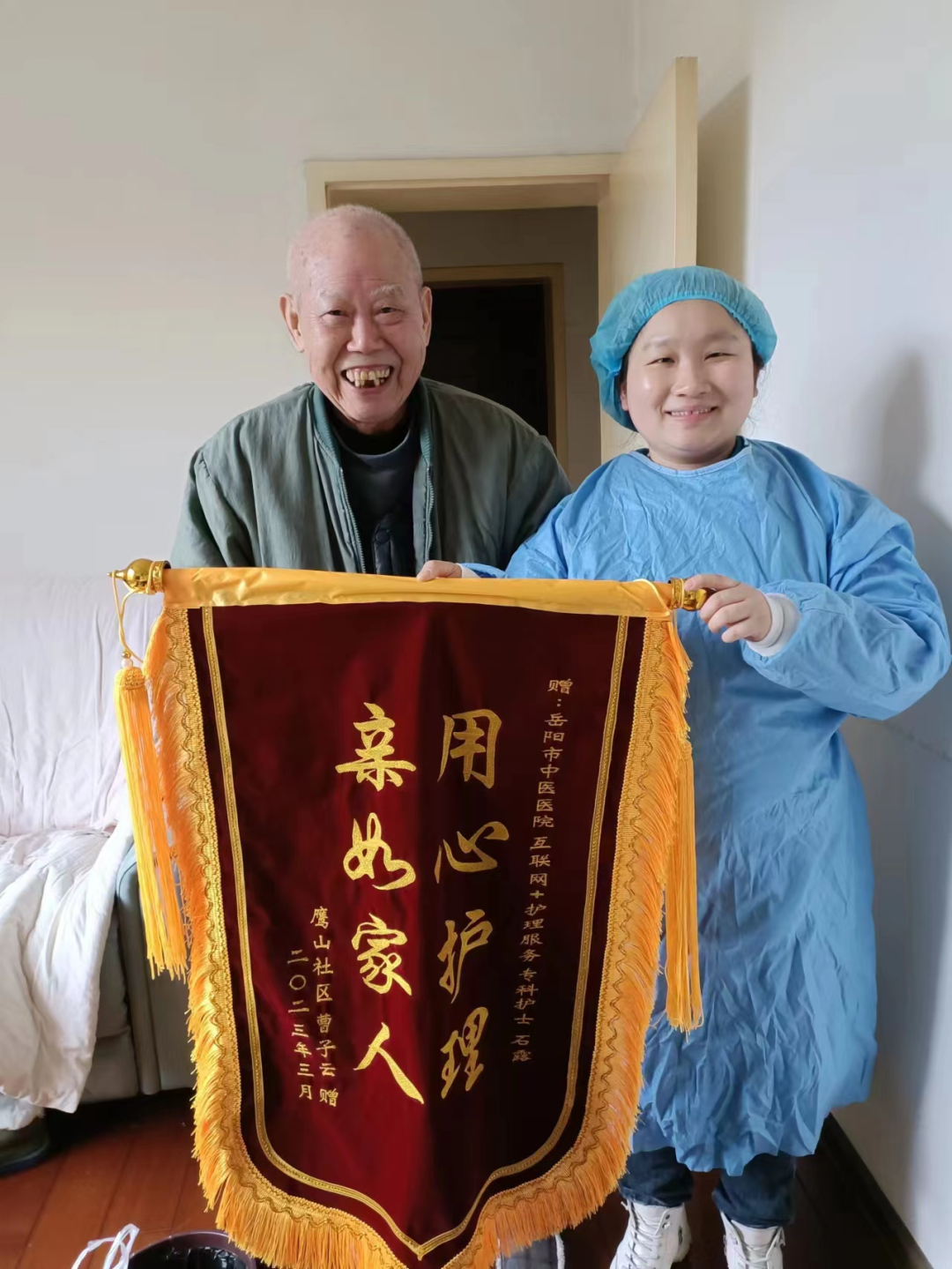 岳阳市中医医院的伤口造口治疗师石露接诊了鲁奶奶这一单,她来到患者家中,细致耐心的评估鲁奶奶的伤口,同时详细询问奶奶平时的日常习惯及饮食。给奶奶伤口换药后,石露用通俗易懂的语言跟爷爷讲解了压疮的知识,并打电话给曹爷爷的儿子,告知鲁奶奶目前的状况、治疗过程及愈后情况,让他放心。