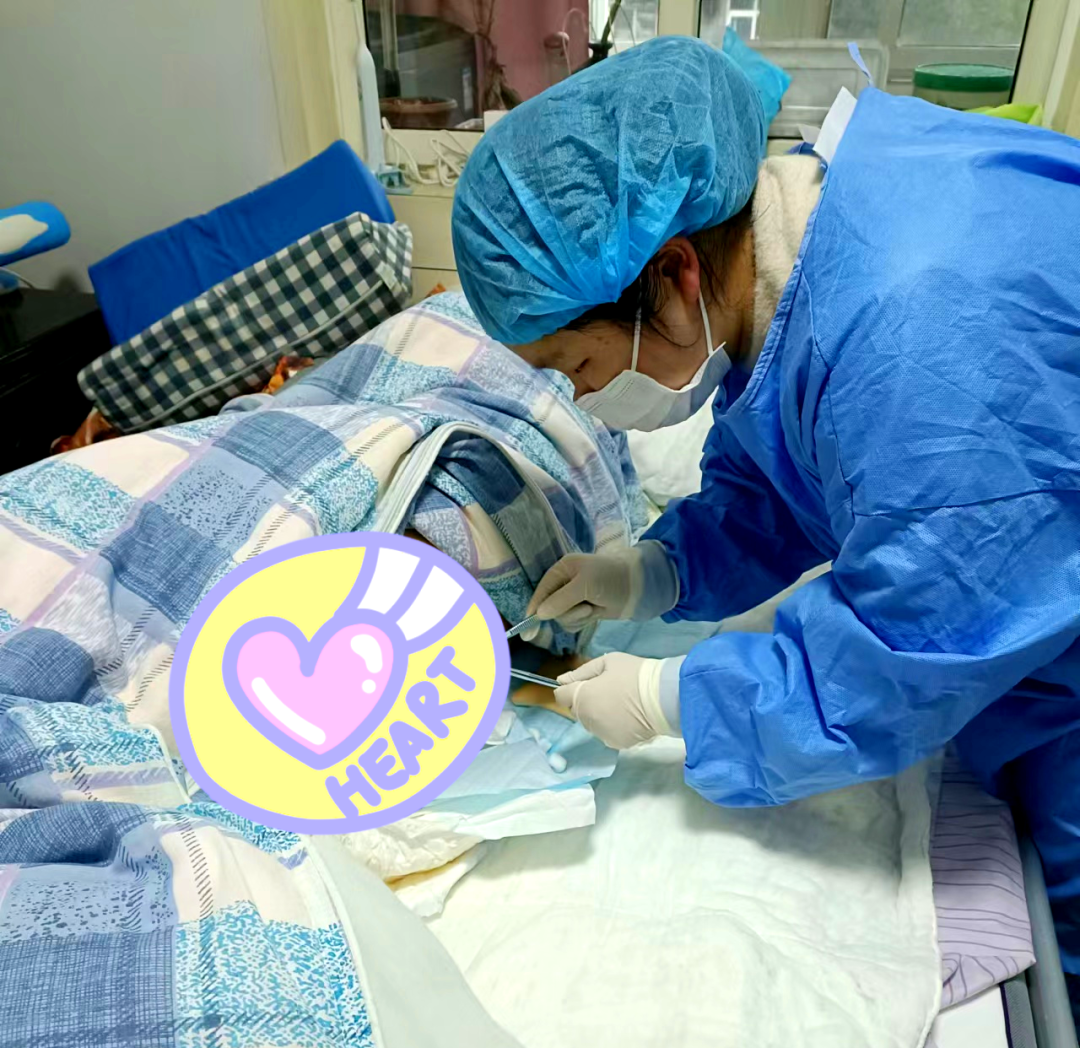 一段关爱与救治的缘分就这样开始了。压疮发生的原因是局部组织的缺血、缺氧造成皮肤的坏死及溃烂,一边换药的同时,伤口也在继续的扩大,所以压疮换药是一个漫长又纠结的过程。并且,鲁爷爷和曹奶奶后续相继感染新冠,翻身不及时,营养差,伤口被尿液浸湿,导致奶奶的伤口进一步恶化。