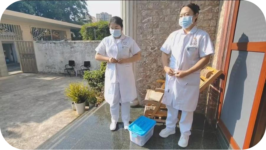 医院接到预约订单后,第一时间与患者家属取得联系,详细询问老人的身体情况后,决定派出执行护士徐瑶、王娇娇为包奶奶上门护理。王娇娇是伤口护理专科护士,徐瑶是伤口造口失禁护理进修护士,她们在伤口造口护理方面拥有丰富经验,擅长对患者急慢性伤口进行评估、测量、处理及健康教育,能处理各类术后伤口并发症(如感染、出血、淋巴皮下积液、吻合口漏、咽漏等)。