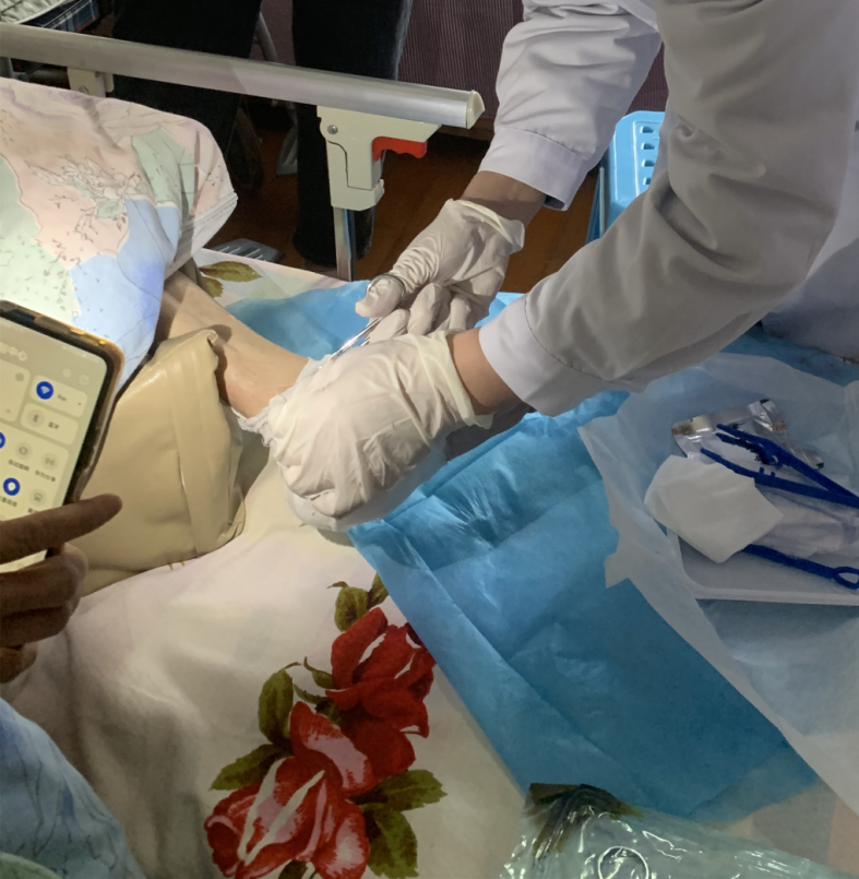 结束后,家属激动地说:“非常感谢你们医护团队上门给我的妈妈换药,医护到家真不赖,真的方便了我们不方便就医的人群,而且很专业,真是感谢你们!”
