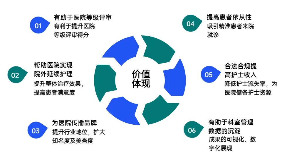 医疗机构开通“互联网+护理服务”平台,对医疗机构的价值主要体现在以下六点: