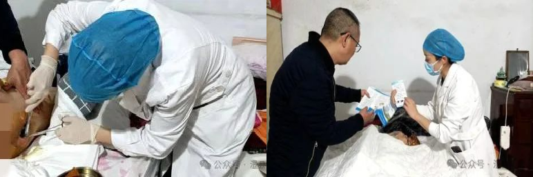 李奶奶(化名)因疾病影响需长期卧床,出现了压力性损伤(褥疮),需要定期对伤口进行换药。家属通过澧县人民医院微信公众号“互联网+护理”平台预约了居家护理服务,医院压力性损伤护理小组组长肖宏方第一时间与患者家属取得联系,了解详细情况后,派出小组骨干成员张锦和严芳两位护士上门护理。来到患者家里,详细了解患者的情况,在专业耐心的操作下,顺利完成换药工作。