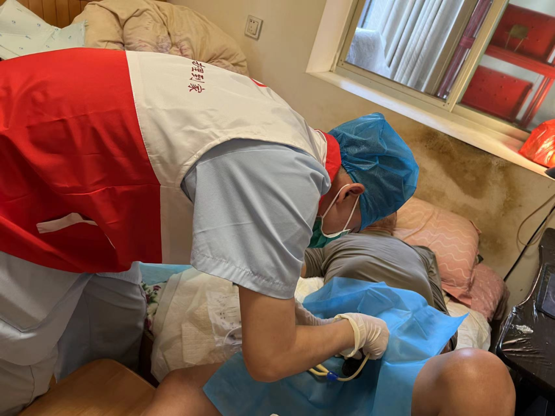 “男丁格尔”谭寅轩收到消息后,立即电话联系了谢叔叔家属,对患者的病情全面了解、充分评估风险并且约定好上门时间后确认订单。次日,谭寅轩利用休息时间来到谢叔叔家中,顺利为患者更换了尿管。