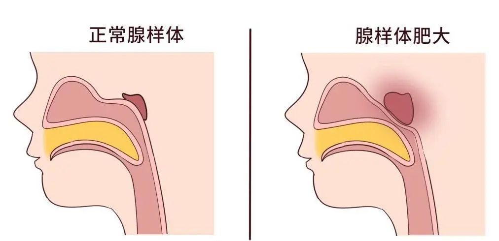 当细菌、病毒等病原体入侵时,腺样体就会自动“变大”(充血、肿胀),把侵略者拒之门外。等到孩子病好了,腺样体通常就会逐渐恢复原貌。如果不能缩到原来的大小,肥大的腺样体就会堵塞后鼻孔和口咽腔,导致上气道狭窄。
