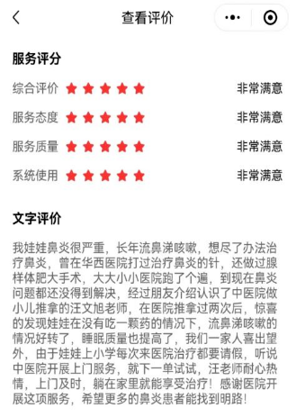 6月3日,治未病科来了位鼻炎患儿,听家属说,娃娃长年流浓鼻涕、咳嗽,想尽了办法来治疗鼻炎,曾在华西医院治疗过,做过腺样体肥大手术,到现在鼻炎问题都还没得到解决,经朋友介绍认识了做小儿推拿的汪文旭老师,第一次来治疗后娃娃就排出了大量的浓鼻涕,咳出了很多黄痰,当晚咳嗽的症状就缓解了很多,汪老师听说娃娃在上小学,耐心的向家长介绍了我们中医院开展的延续护理,上门服务,家长表示很方便,于是有了接下来的故事。