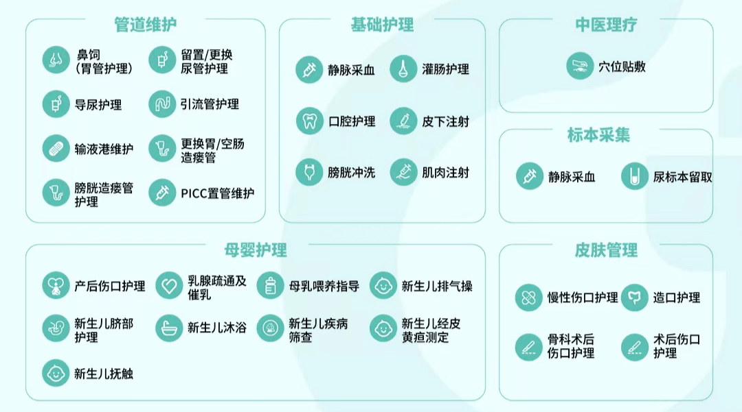格尔护士已经与全国数百家医院建立了“互联网+护理服务”合作,平台上线的都是三甲、二甲等医院,可为你提供贴心靠谱的护理上门服务,目前已开通的上门护理服务包括PICC/输液港护理、胃管留置或更换护理、导尿管的留置或更换护理、压疮护理、伤口换药、造口护理、糖尿病健康宣教、血糖监测、新生儿护理、中医护理等多项上门护理服务。满足群众多样化、多层次的健康服务需求,让患者足不出户就能享受专业、优质、安全、便捷的护理服务。