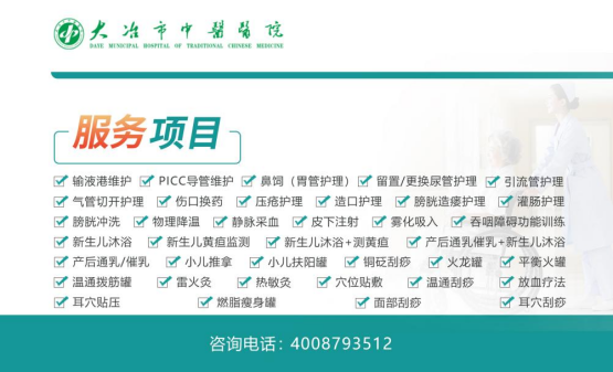 大冶市中医医院通过“线上申请、线下服务”的模式,让专业护理服务从医院走进家庭,为出行不便有需要的群众提供家庭护理、居家康复、健康教育等服务。以实际行动切实解决人民群众的燃眉之急,为患者提供特色化、差异化、人性化服务,减少患者的就医时间与交通成本,让广大人民群众足不出户就能享受到中医医院高质量、高水平的专业中医护理服务。
