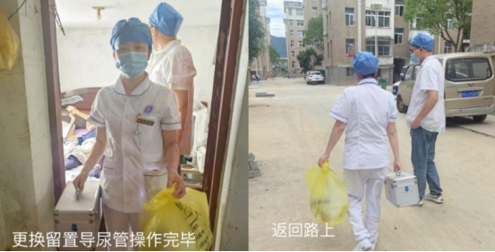 在徐大爷家中,医护人员与家属进行了深入的交流,全面了解了徐大爷的日常护理情况及身体状况。随后,经过专业的评估与细致的操作,他们成功为徐大爷更换了留置导尿管。整个过程中,医护人员不仅展现了高超的专业技能,更以耐心、细致的态度赢得了徐大爷及家人的高度赞誉。