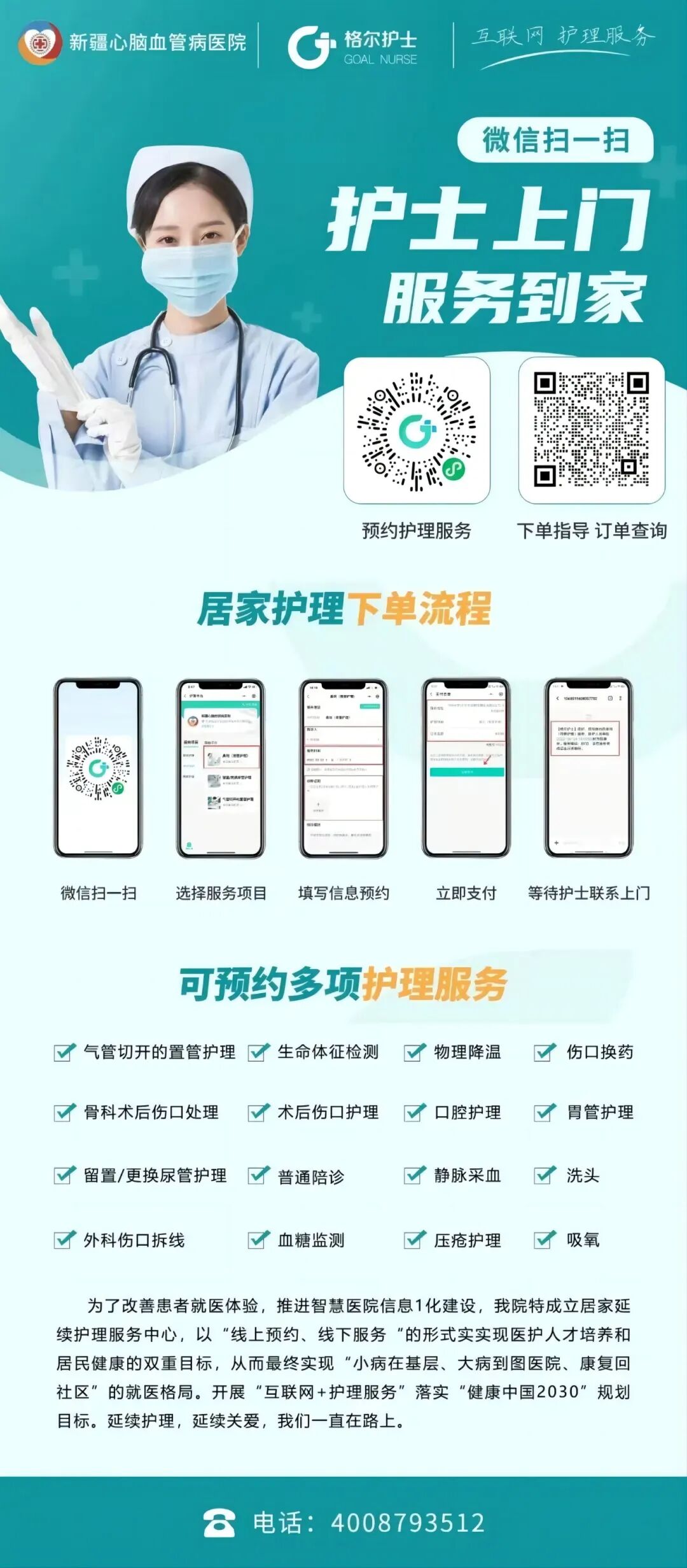 “咚咚咚,咚咚咚.....李阿姨,我们是新疆心脑血管病医院的护士,您预约的今天给李爷爷更换尿管”。9月28日,家住新市区的李阿姨(化名)听到敲门声,赶紧打开门迎进来。原来,李阿姨通过手机APP预约了给长期卧床的老父亲更换尿管、胃管。李阿姨一边开门,一边感慨,“这下可真是方便了,手机上点点,三甲医院的护士就来家里了!”