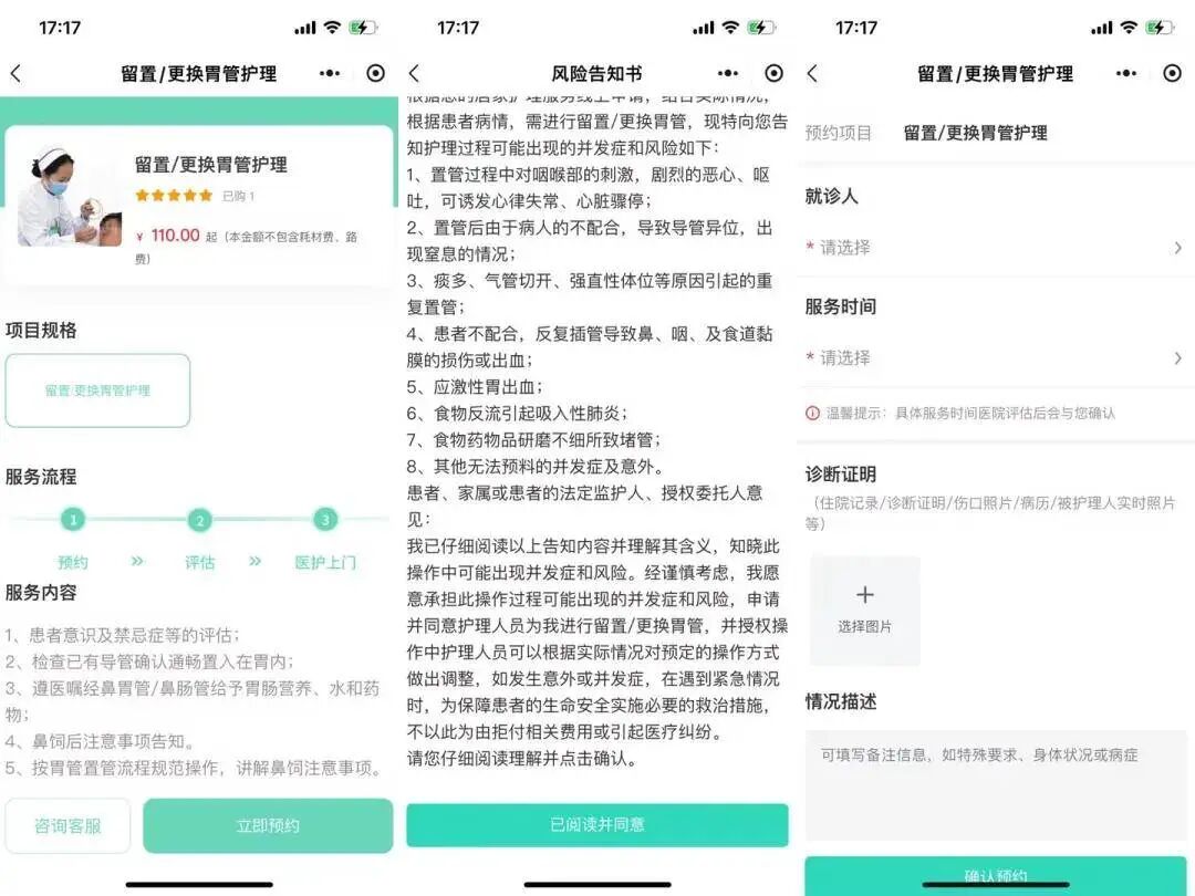 “胃管到期更换,出院前还在考虑这是一个大问题,由于病人卧床,体质较弱,一来一去的路上很不方便。没想到现在可以在网上预约护理服务真的很方便,真是帮助我们家属解决了一个大难题啊!”家属感激的说到。