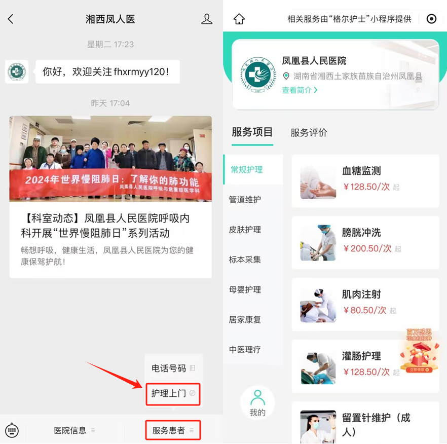 格尔护士 400-8793-512 搜索 扫码下单 格尔护士 热门文章 凤凰县人民医院"互联网+护理上门"为爱出发,服务到家--解决“换药难” 凤凰县人民医院"互联网+护理上门"为爱出发,服务到家--解决“换药难” 格尔护士 为满足群众日益增长的健康服务需求,我院在2022年由医院护理骨干组成一支高质量的“互联网+护理上门服务”的队伍,为高龄、慢性病、失能或失智等人群提供护理上门等医疗服务。自开展以来,护理上门服务已经接到140例订单,多次为居家行动不便的患者提供了专业优质的护理服务,得到了患者的一致好评和赞扬。 2024年11月9日,凤凰县人民医院接到一份订单。77岁的黄爷爷因糖尿病引起下肢静脉溃疡,前期在湘西州人民医院治疗,现在出院回家想在家中继续换药治疗。接到“上门护理服务”订单后,副组长李弦与家属确定了患者情况,约好上门服务时间,委派伤口造口护理门诊专科护士吴瑞容为黄爷爷提供上门服务。准备好出诊物资,经双人核对后,于11月10日下午前往患者家中。到达后,主管护师吴瑞容首先对黄爷爷的身体状况、生命体征、全身皮肤以及创面等进行了综合评估,伤口面积为2cm*1cm左右,创面新鲜,红润,接着严格按照操作标准对伤口进行了换药。伤口换药完成后,吴瑞容耐心为家属指导了注意事项等,并与家属约定好下次换药时间。次日通过微信联系对伤口换药情况进行随访,家属认为通过专业人员上门提供专业的护理服务,解决了卧床老人行动不便就医困难的大问题。 此类问题,在很多家庭存在。自上门护理服务开展以来,为患者带来了便利,满足了广大群众多样化、个性化、差异化的护理服务需求,持续延伸护理服务。 当身体不适、需要护理时,去医院或诊所不再是唯一选择。“尿管、胃管到期如何更换?”“出现伤口如何换药?”“出院后长期置管如何维护?”“长期卧床如何护理?”.......每次遇到这些问题,您是否感慨,如果能把医院护理带回家就好了? 服务项目 目前,我院开通的上门护理服务项目有: 常规护理:静脉采血、肌肉注射、皮下注射、伤口换药、口腔护理、压疮护理、血糖监测、留置针维护(成人)、更换腹膜透析外接短管(普通伤口护理)。 管道维护:鼻饲(胃管护理)、留置/更换尿管护理、PICC置管维护、导尿护理、输液港维护、管道护理。 母婴护理:产后通乳/催乳、新生儿护理、新生儿抚触+测黄疸、产后会阴伤口护理、小儿推拿、小儿推拿+捏脊等。 中医理疗:成人针灸等。 特殊护理:灌肠护理、糖尿病足的护理如果您也有相关服务需求,可通过以下进行预约 如何预约上门服务 如何预约上门服务? 方式一【网上预约】:微信搜索“湘西凤人医”微信公众号,关注公众号,点击底部菜单栏“服务患者”→“护理上门”→进入格尔护士平台→选择服务项目→填写订单信息→选择上门服务时间→上传就医证明等→确认下单。 方式二【二维码预约】:识别下方图片二维码进入微信小程序进行预约。 来源:湘西凤人医公众号 END 格尔护士作为深耕护理行业十余年的“上门护理”服务平台,与全国数千家医院合作,为老百姓提供专业、放心的上门护理服务。服务涵盖常规护理、管道维护、母婴护理、中医理疗、居家康复、特殊护理等六大类300多个项目,覆盖全国31个省市及地区,让您居家也能享受到5年以上临床经验的专业护士上门护理。仅需手机点一点,省时省力又省心,上门护理就找格尔护士! 咨询热线:400-8793-512 “格尔护士”居家护理服务平台 预览时标签不可点 微信扫一扫关注该公众号 继续滑动看下一个 轻触阅读原文 格尔护士 向上滑动看下一个 知道了 微信扫一扫 使用小程序 取消 允许 取消 允许 × 分析 : , 。 视频 小程序 赞 ,轻点两下取消赞 在看 ,轻点两下取消在看 分享 留言 收藏