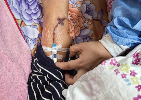 彭莲护士匆匆赶回家,就拨了几口饭,便驱车前往患者家中。阿姨家的位置比较特殊,要绕过一个山塘。每次走那段路,彭莲都小心翼翼。当她终于到达阿姨家时,顾不上一路的疲惫,立刻投入到工作中。认真地为阿姨进行 PICC 护理,动作娴熟,一丝不苟,每一个步骤都严格按照规范进行。在护理过程中,彭莲护士还耐心地向阿姨和叔叔讲解护理的注意事项,解答他们的疑问。她的专业和细心,让老两口倍感安心。