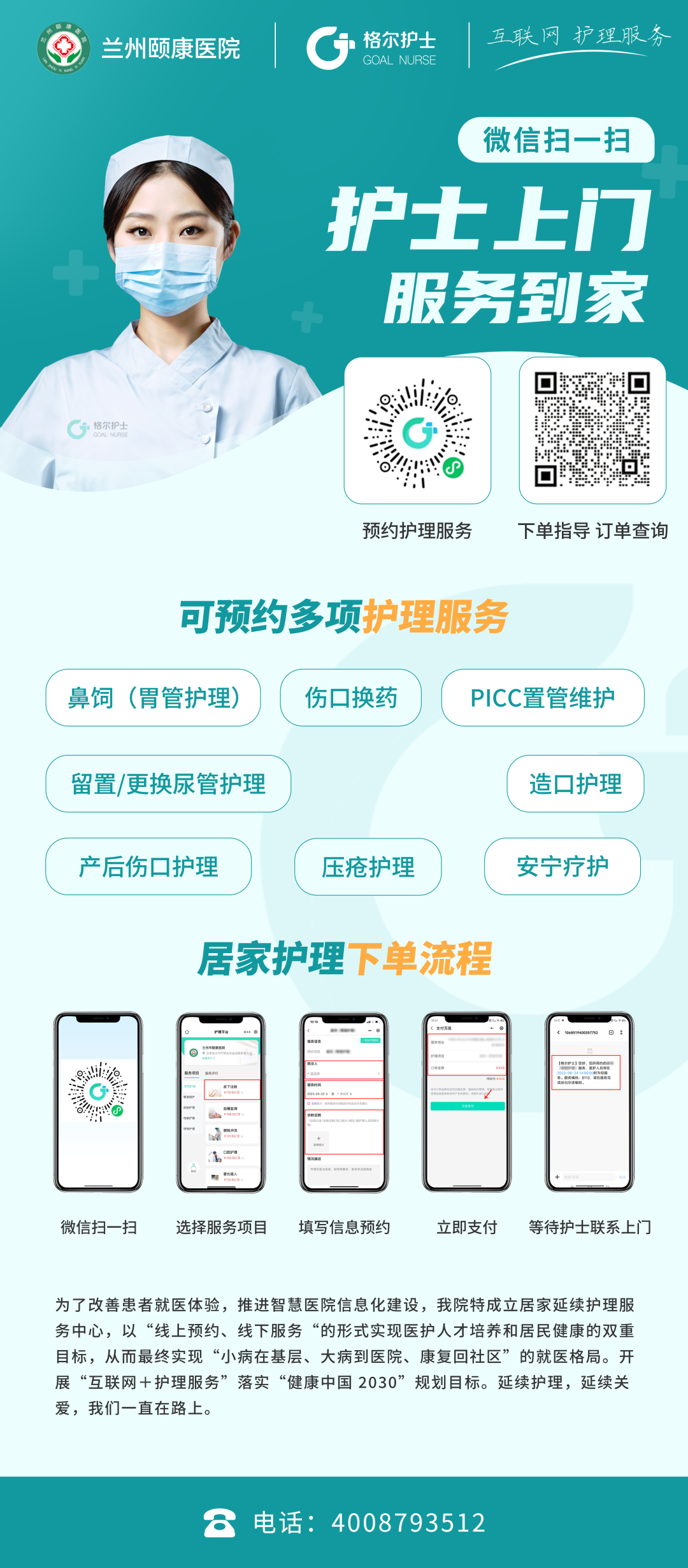 兰州颐康医院“互联网+护理服务”正式上线,“医护上门护理”预约指南,建议收藏!
