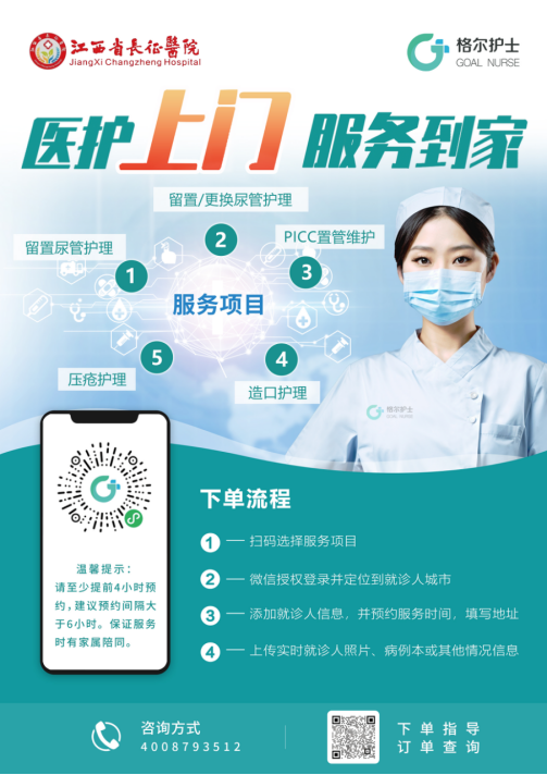 为进一步改善护理服务,满足人民群众多元化护理服务需求,江西省长征医院于2024年12月6日正式上线“互联网+护理服务”,将医院优质护理服务从院内延伸至院外,打通专业护理到家庭“最后一公里”,为需要延续护理服务的群众提供专业、安全、便捷的上门服务。