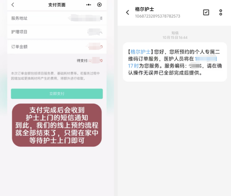 步骤四:支付成功后,等待护士接单评估,医院护士将按约定时间提供相应护理服务。