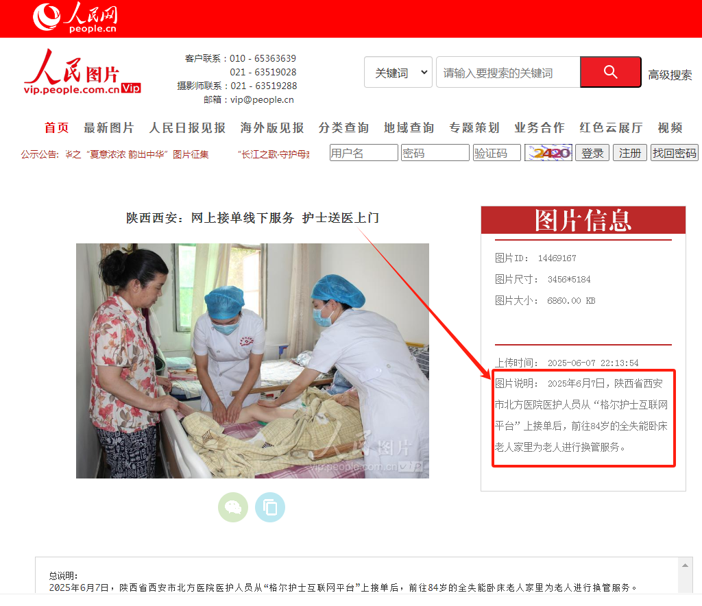 权威媒体聚焦!西安市北方医院“互联网+护理” 服务获省卫健委《陕西老年健康报》、《人民网 —— 人民图片》报道