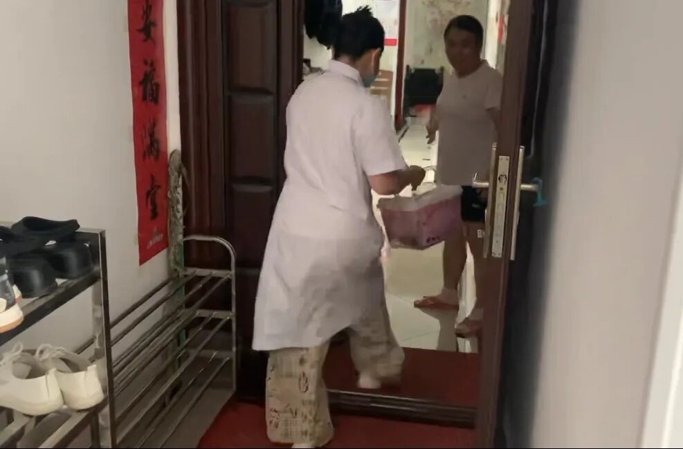 6月20日,李奶奶却遭遇腹泻困扰,胃管更换也迫在眉睫。当熊勤林和陈娜两位护士长第三次站在门前,她们带来的已不仅仅是技术。熟练更换胃管、测量血压后,并针对患者腹泻情况进行了饮食指导、皮肤管理等相关知识宣教。这一刻,护理超越了操作的边界,延伸为一份沉甸甸的“家庭照护赋能计划”。这第三次叩门,叩响的是专业护理向家庭健康管理延伸的序曲,是医者仁心在患者床畔最温暖的落地。