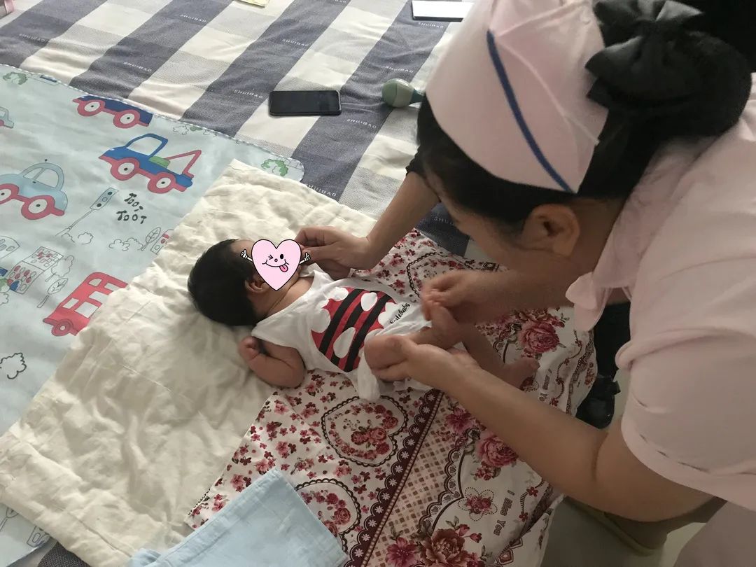 新生儿沐浴完成后,李丹丹护士手把手现场“教学”新生儿抚触,她告诉宝妈:新生儿抚触是国际公认对婴儿健康有益的一项护理技术,通过触摸来刺激宝宝的发育,有利于提高免疫力,改善睡眠;同时增强宝宝与父母的交流,帮助宝宝获得安全感和信任感。