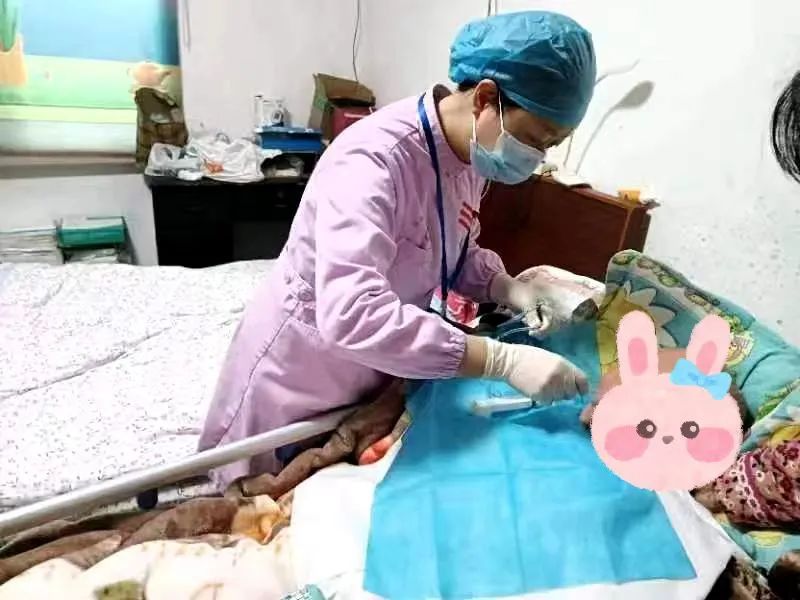 还记得去年春节大年除夕日,雷桂英刚做完好一桌年夜饭,一家人刚坐下准备吃饭,“铃铃......”手机铃声穿过热闹的大厅传到雷桂英的耳里。“雷护士,不好意识,打扰了,我爸的胃管堵住了,打不进流质,老爷子已经超过8小时没有喂食了,怕出现低血糖,你现在方便过来了吗”雷桂英二话不说,立即骑上电动车冒着寒风前往。
