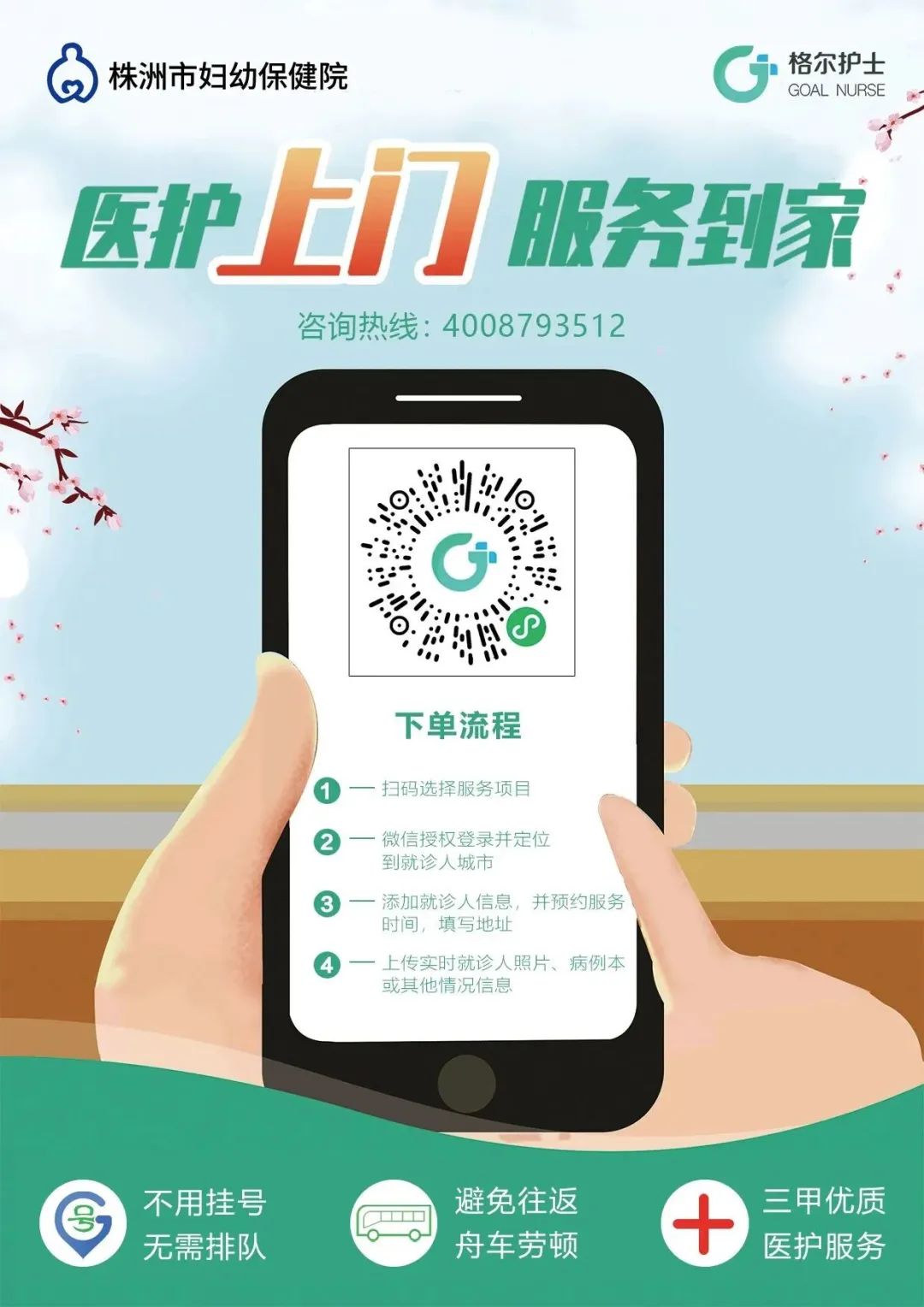 为了让更多患者享受到“护士上门”服务,株洲市妇幼保健院还开通了如下服务项目:鼻饲(胃管护理)、留置/更换尿管护理、皮下注射、肌肉注射、PICC胃管维护、乳腺疏通及母乳喂养指导、婴幼儿PICC的维护、新生儿沐浴+抚触等。现在只要通过以下方式就可预约上门护理服务!