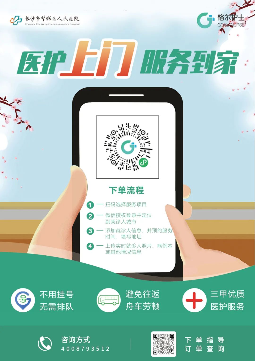 直接点击下方图片或长按扫描二维码进入“格尔护士”居家护理服务平台进行预约: