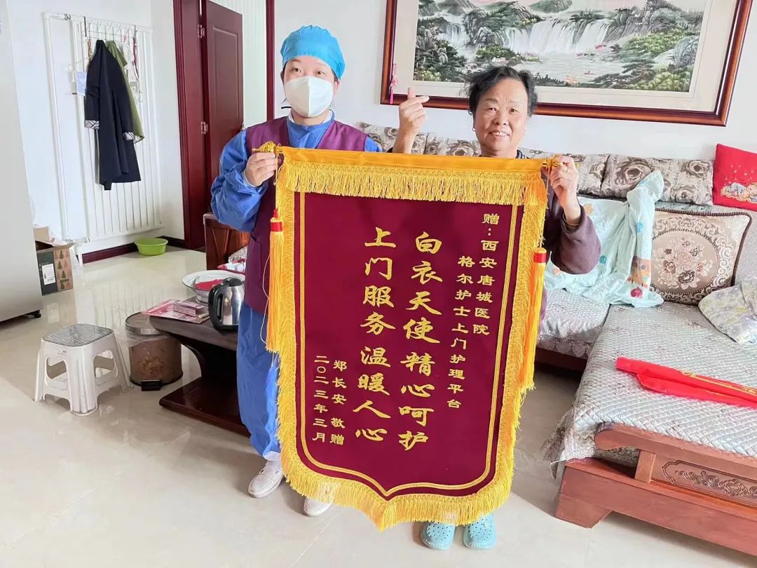 近日,一面锦旗送到了西安唐城医院心内科护士长袁爱玲的手中,家属握着袁护士的手激动地说:“感谢医护上门服务中心!真是解决了我家的大问题,太谢谢你们了!”这面锦旗的背后,是西安唐城医院医护人员七次奔波上门护理的感人故事。