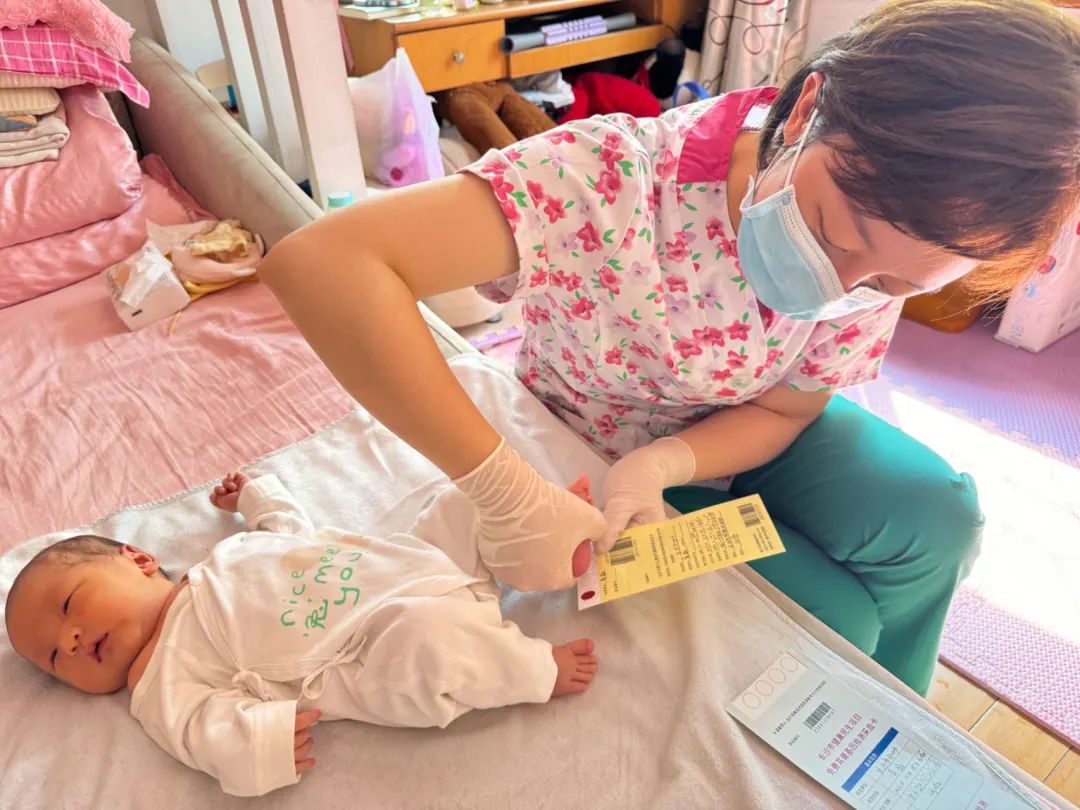 预约患者是长沙市妇幼保健医院刚出生6天的一名婴儿,预约项目是新生儿经皮黄疸监测、新生儿疾病筛查足底采血、新生儿护理(新生儿沐浴+抚触+脐部护理)。接到订单后长沙市妇幼保健医院派出护理部团队+家化一区张宏美护士长,以及何维老师,项目操作由何维老师完成。