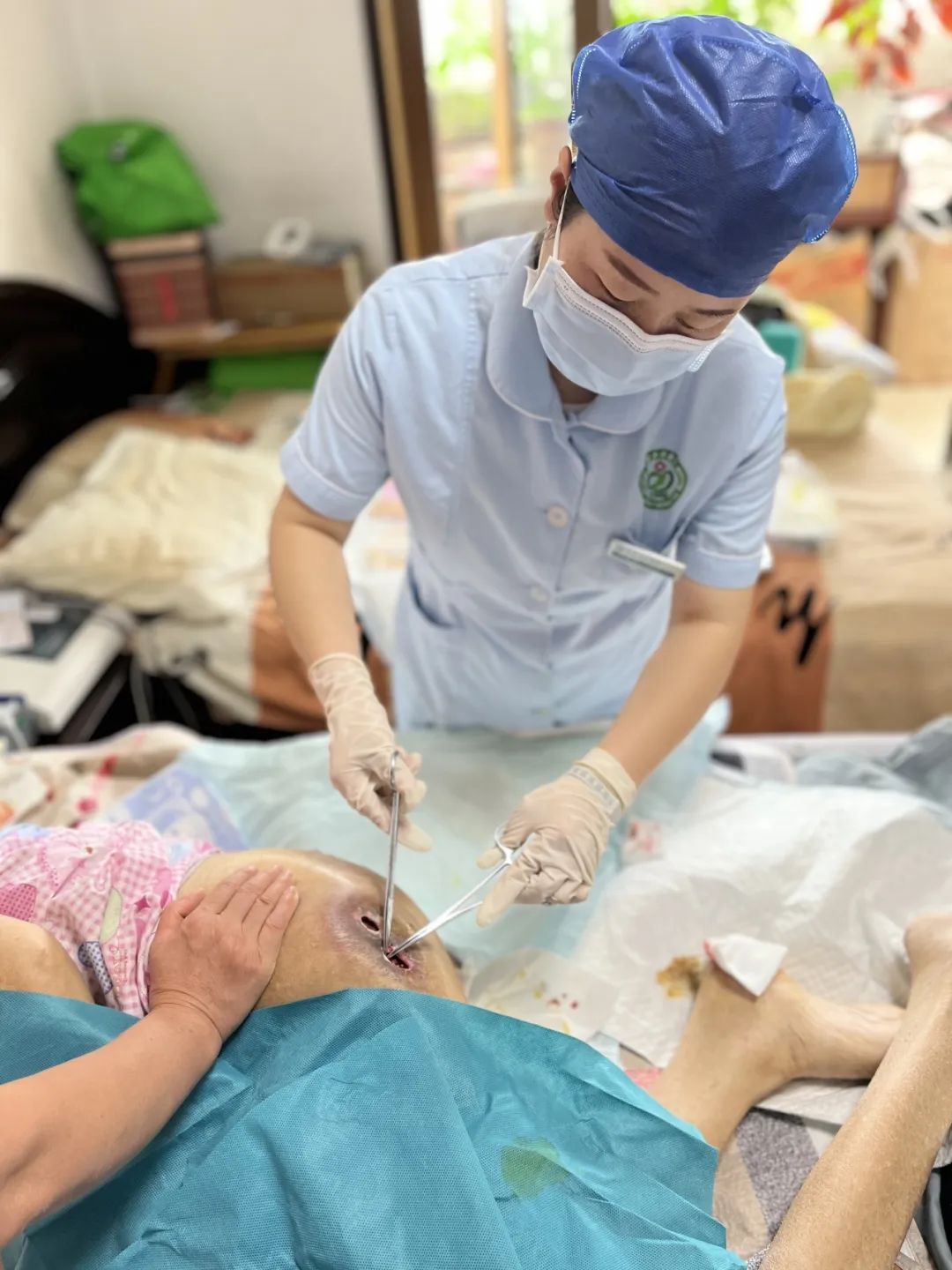 创面门诊国际伤口治疗师卢凯燕为患者处理压疮