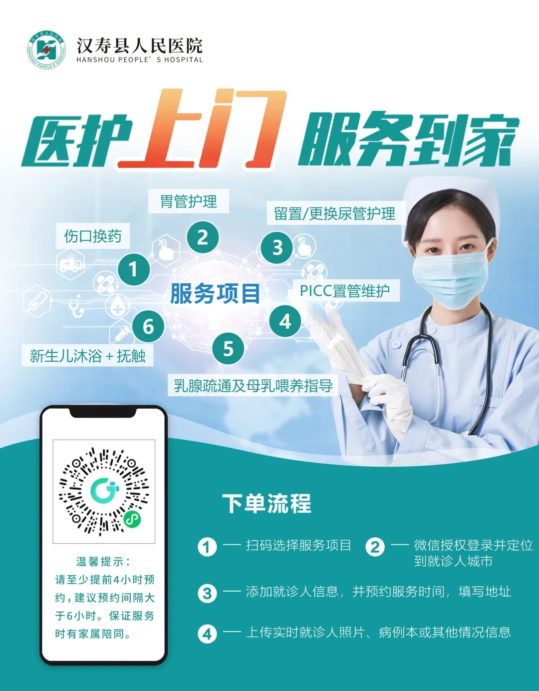 为积极响应民众对健康服务多元化、高质量的需求,自2023年7月起,汉寿县人民医院创新服务模式,正式推出“互联网+护理服务”。通过便捷的“线上预约、线下服务”流程,我们为因病行动不便的群众搭建起一座连接家庭与专业的桥梁,让专业的护理服务触手可及,温暖每一个需要关怀的家庭。截至目前,我们已成功服务超过百位患者,赢得了广泛好评。