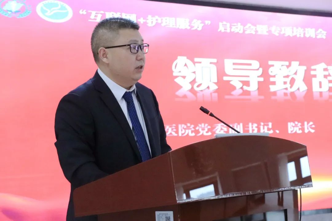 市卫健局党委委员、副局长陈清鑫致辞,“互联网+护理”服务是贯彻落实积极应对人口老龄化、实施健康中国重大战略部署,增加优质护理服务供给的有力举措。他提出三点希望:一是市立医院护理团队要依托先进的服务平台和专业的护理能力为特殊群体提供优质高效的护理服务,实现护理服务从医院到家庭的有效衔接。二是要结合医院实际,创新服务模式和方式方法,拓展医院护理的病种范畴、技术范畴,探索符合群众需要、具有特色的服务模式。三是先行先试,发挥引领和带动作用,打造一支专业技术过硬、服务态度优良的护理团队,为增进我市人民群众的健康福祉做出积极贡献。