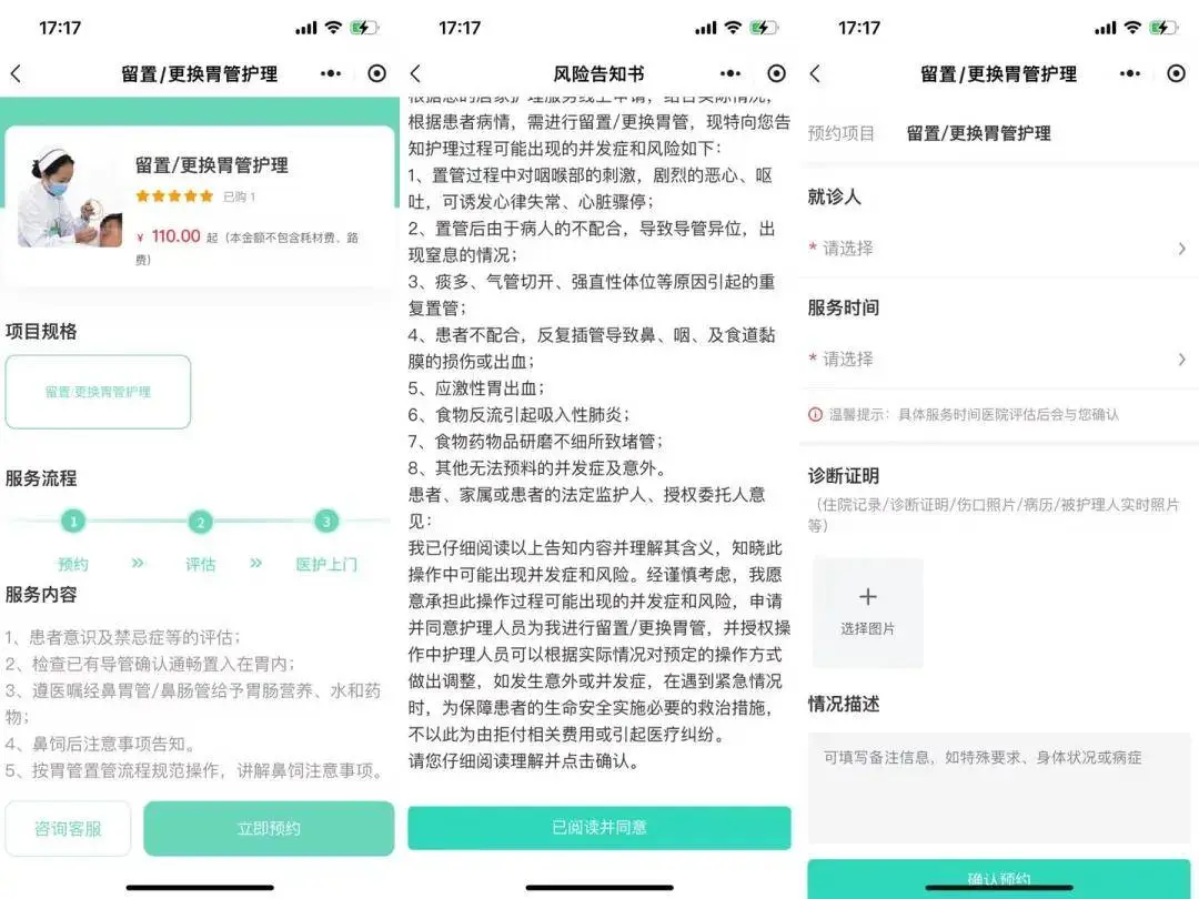“胃管到期更换,出院前还在考虑这是一个大问题,由于病人卧床,体质较弱,一来一去的路上很不方便。没想到现在可以在网上预约护理服务真的很方便,真是帮助我们家属解决了一个大难题啊!”家属感激的说到。