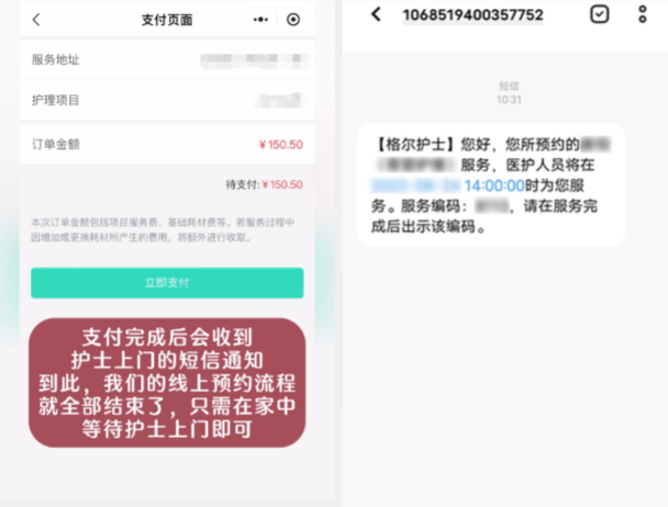 第四步:支付成功后,等待护士接单评估,即可上门服务。